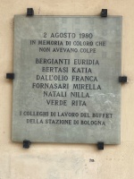 м. Болонья. Меморіальна дошка загиблим працівникам вокзального буфету.
