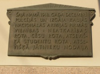 м. Рига. Меморіальна дошка першим формуванням Латвійської армії.