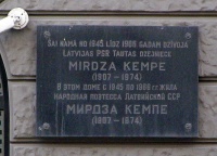 м. Рига. Меморіальна дошка Мірдзі Кемпе.