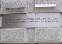 м. Рига. Меморіальна дошка на честь проголошення незалежності Латвії.