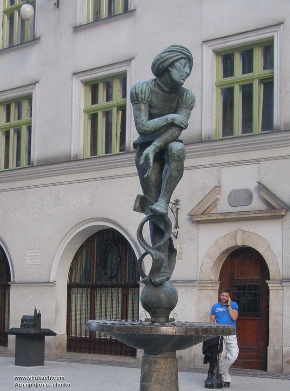 стоїть фонтан з фігуркою бідного студента – жака. Цей фонтан – подарунок місту