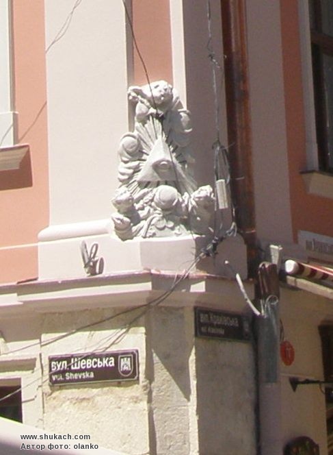 Оздоблення четвертого поверху повторює вистрій кам'яниці кінця XVIII ст. — членований канельованими пілястрами з іонійськими капітелями. Ріг кам'яниці — зрізаний, підкреслений пілястрами і скульптурною пластикою "Всевидяче око" над тягою, що підкреслює партер.