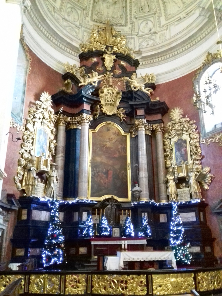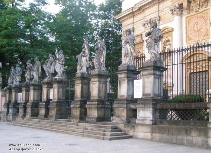 Цей костел свого часу єзуїти створили за всіма правилами сьогоднішнього маркетингу. Місце розташування – близько до Королівського замку, зручність огляду – будівля ніби «втоплена» у вулицю так, що її можна оглянути повністю та помилуватися її красою, рекламні агенти – статуї 12 апостолів, котрі розміщені на огорожі костелу, ніби закликають зайти саме у його двері.