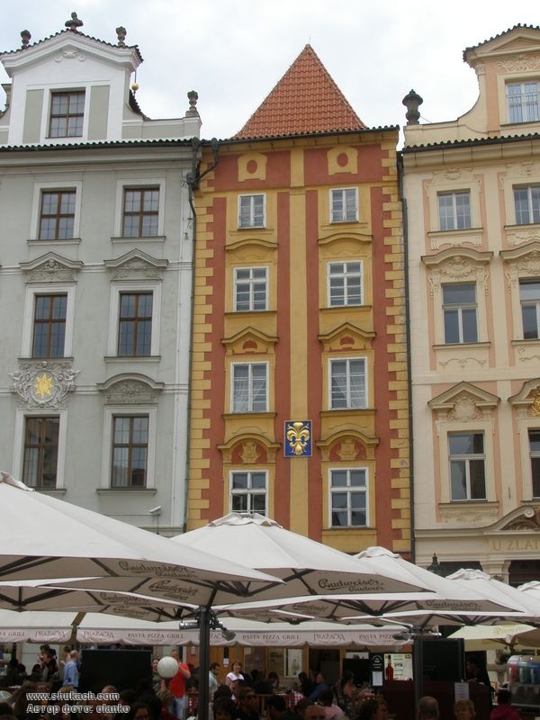 Тут в 1374 році, ще за життя Карла IV, з'явилася одна з перших аптек на Старому Місці Празькому. Говорять, що першим господарем був аптекар на ім'я Онафор. Пізніше, майже впродовж 200 років, тут була приватна лікарня, де лікували травами і природними засобами. Практично сучасний вигляд будинку надав відомий архітектор бароко Крістофер Дінценхофер вже в XVII столітті.