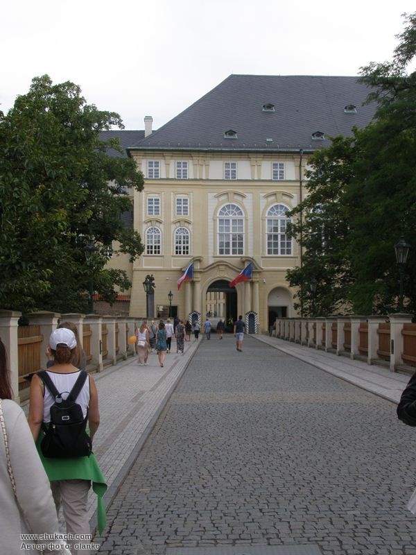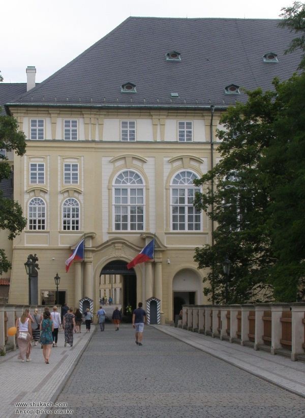 Пороховий міст - це єдиний шлях з північного боку в Празький град, який приводить до II внутрішнього двору. Перший міст був побудований в 1534-1538 рр. Фердинандом I Габсбургом. Був він дерев'яний і стояв на шести кам'яних стовпах, а зверху покритий дахом. Чому міст називають "Пороховим", точно не відомо. Є два варіанта. Перший: на мосту під дахом накопичувалася пил (порох). Другий: назва пов'язана з порохом, який зберігався в сусідній вежі Мігулка. У 1541 р міст згорів.