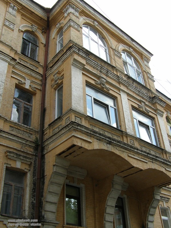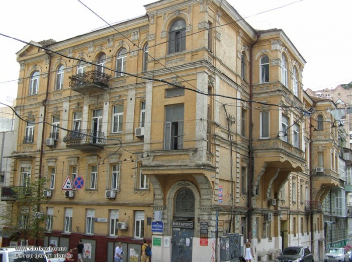 Чотириповерховий з напівпідвальним поверхом, цегляний, пофарбований, у плані складної конфігурації, наближеної до каре. Оформлений еклектично з використанням елементів модерну. Архітектурний декор змодельовано у цеглі та доповнено ліпленням. При надбудові оформлення двох нижніх поверхів з пласкими безордерними фасадами було в основному збережено, але в загальній композиції вирішальної ролі набули прямокутні у плані еркери, що нависають над вузькою вулицею та провулком. Декор фасаду вирізняється надмірністю форм, що характерно для архітектури кін. 19 – поч. 20 ст. Пам’ятка архітектури.
