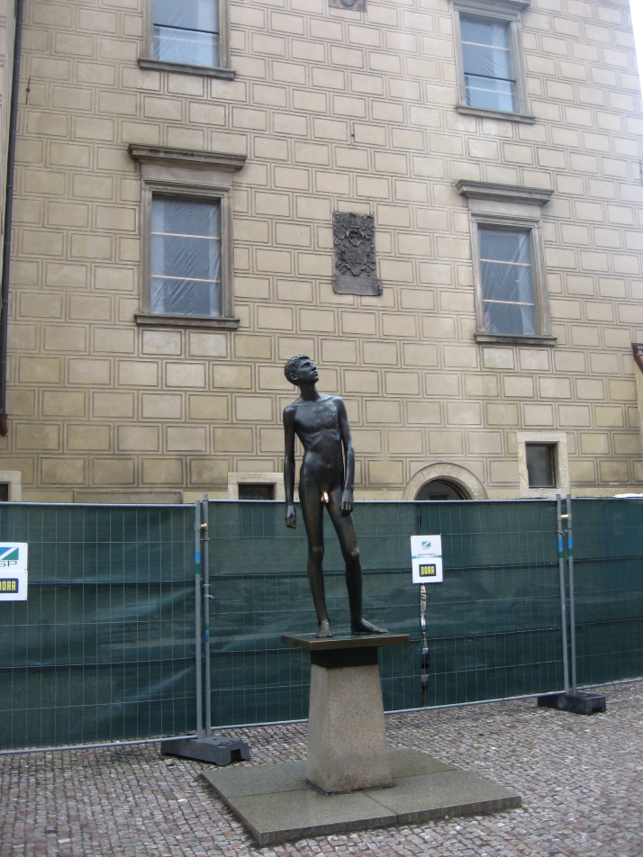 Скульптура «Юність» на невисокому постаменті являє собою голого худорлявого хлопчика-підлітка з опущеними руками, який дивиться вгору. Монумент встановлений у дворі у старого празького замку, в якому розташований музей іграшок, в Празькому Граді недалеко від Златої вулички. Бронзовий пам'ятник - робота чеського скульптора Мілоша Зета.