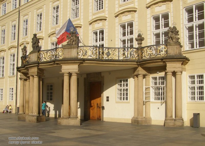 Президентський балкон прикрашає південне крило Президентського палацу в Празькому Граді.