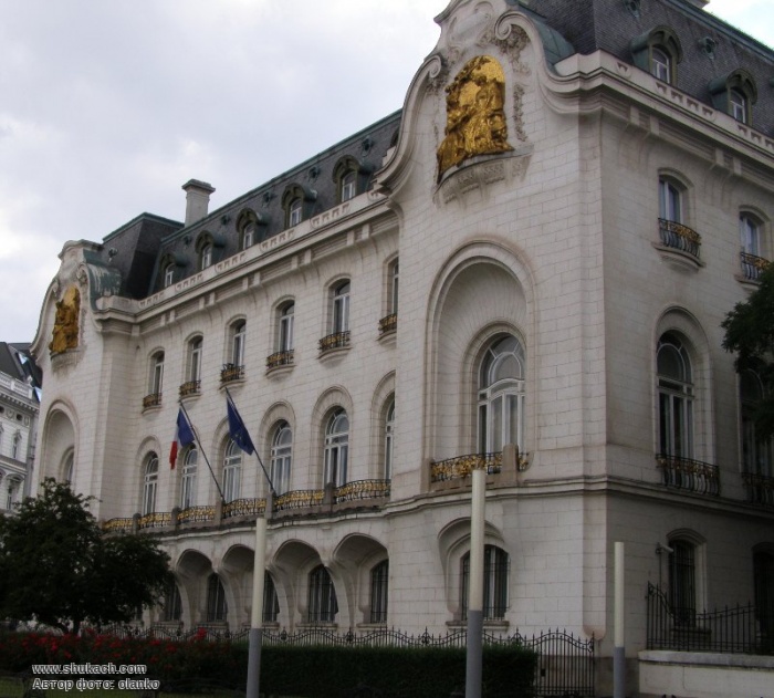 Велика і дуже красива будова виконана в стилі модерн. Для будівництва будівлі амбасади був використаний білий мармур. Триповерхова будова доповнена чудовим мансардним поверхом. Вікна першого і другого поверху виконані у вигляді арок. Верхні кути головного фасаду прикрашають два горельєфа, кожен з яких зображує жінок.