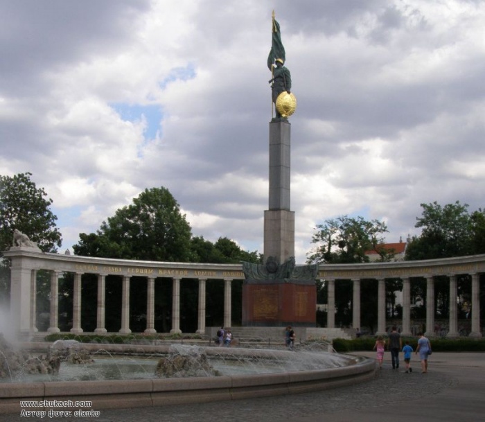 Пам'ятник Героям Червоної Армії, які загинули в битві за Відень в 1945 р. був встановлений на площі Шварценбергплац відразу ж після закінчення Другої світової війни - в середині серпня 1945 р Цей меморіальний комплекс був спроектований архітектором Г. Яковлєвим і виконаний скульптором М. Інтезарьяном. Він являє собою 12-метрову бронзову фігуру солдата з автоматом і прапором в руках, що підноситься на високому постаменті в оточенні напівкруглої мармурової колонади. На п'єдесталі пам'ятника встановлені плити з іменами загиблих воїнів.