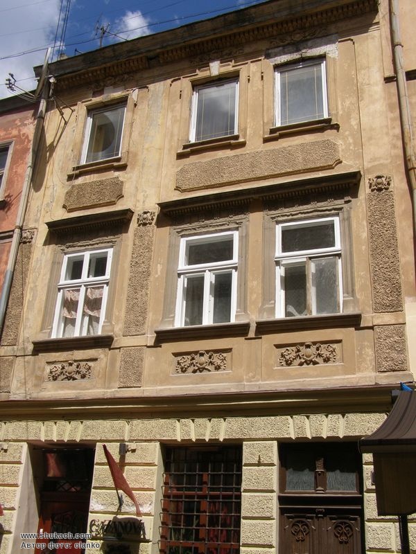Житловий будинок XVII ст. Перебудований в кінці XVIII і XIX ст. Цегляний, витягнутий в плані в глибину ділянки, триповерховий, з характерним трьохвіконним асиметричним фасадом. Фасад оштукатурений, перший поверх рустований, другий прикрашено ліпними вставками.