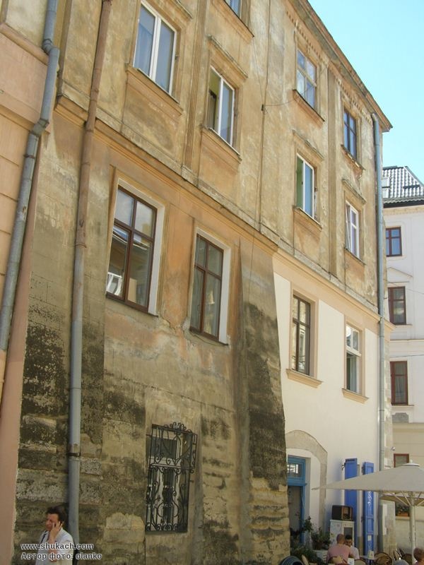 Житловий будинок XVII ст. Цегляний, перебудований в XIX в. П-подібний в плані, чотириповерховий, стіни першого поверху укріплені контрфорсами. Пам'ятка архітектури.