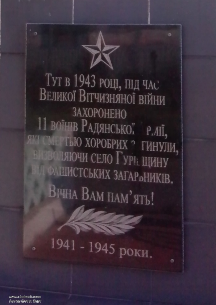 Братська могила воїнів Радянської Армії, які загинули в 1943 році. Встановлено в 1954 році.