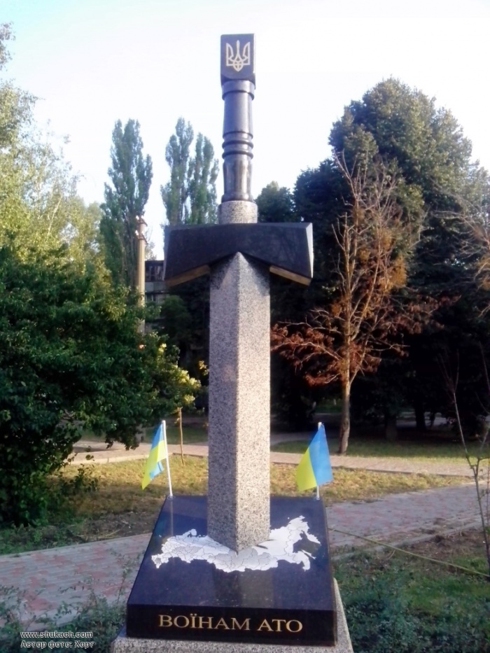 В основі ідеї пам'ятника, за задумом авторів, покладено образ янгола-охоронця українських воїнів. Меч - зброя янгола-охоронця, яка символізує перемогу українських воїнів і розбиває карту Россійської федерації, де знаходяться вороги України.