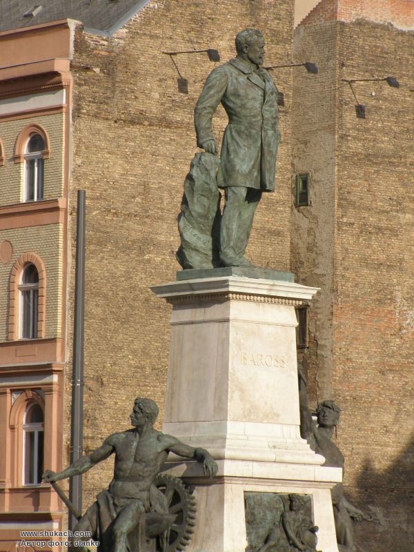 Габор Барош (угор. Baross Gábor) (1848-1892) – видатний державний діяч Угорщини, в різні часи був міністром торгівлі, внутрішніх справ, шляхів сполучення. Пам’ятник встановлений 20 листопада 1898 року. Постамент прикрашають алегоричні фігури Промисловості і Торгівлі. Скульптор Антал Сечі (Szécsi Antal). До 1969 року він стояв перед Східним вокзалом. Після реконструкції пам’ятник урочисто відкритий 6 грудня 2016 року.