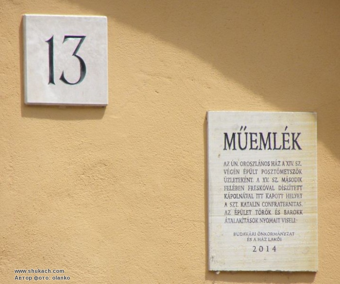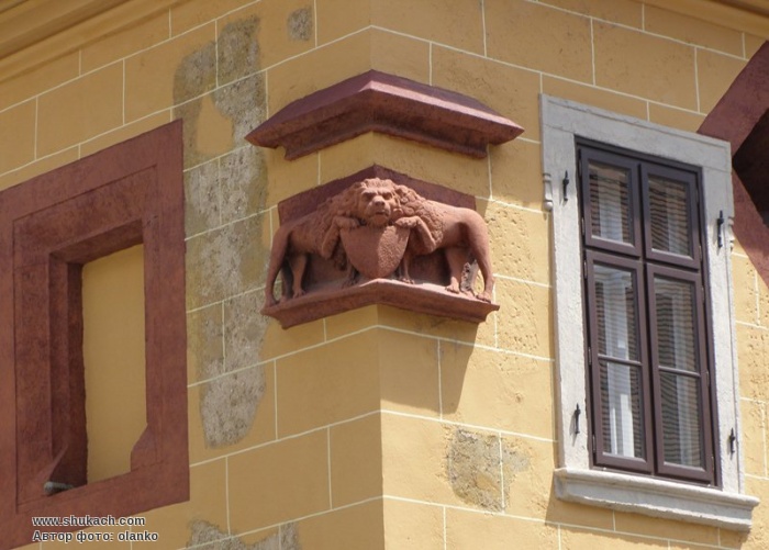 Пам’ятка архітектури XIV-го століття. Роги будівлі прикрашають рельєфи левів, при чому голова у них одна, а тіла два по різні боки.