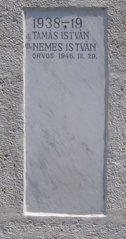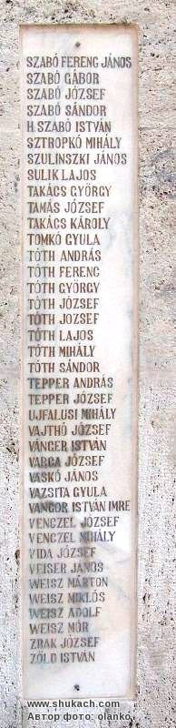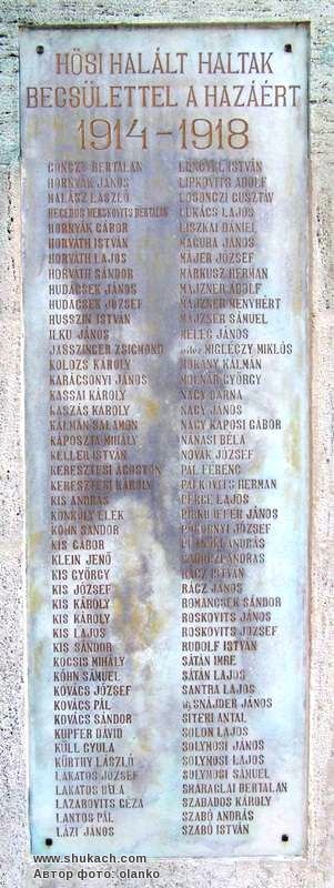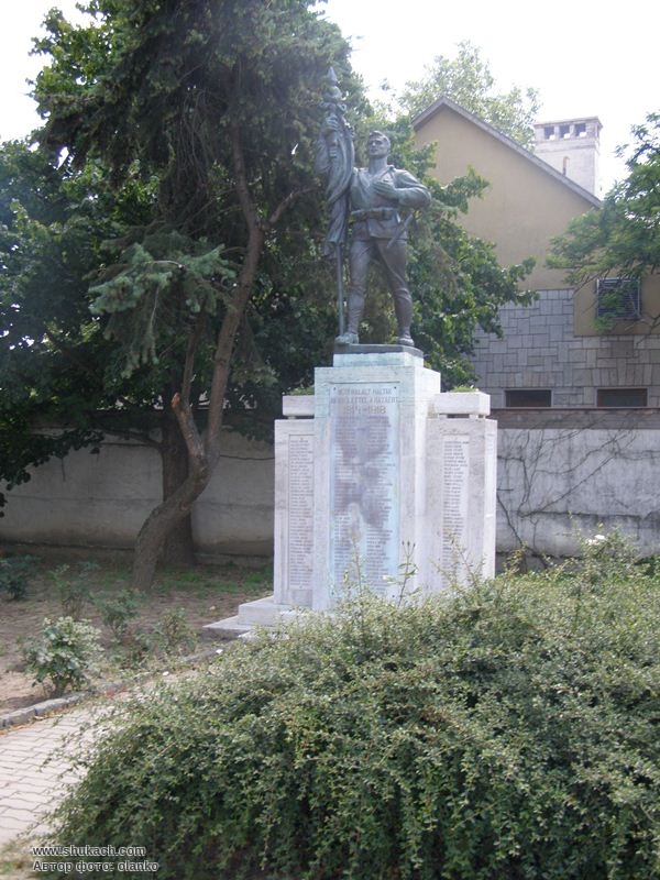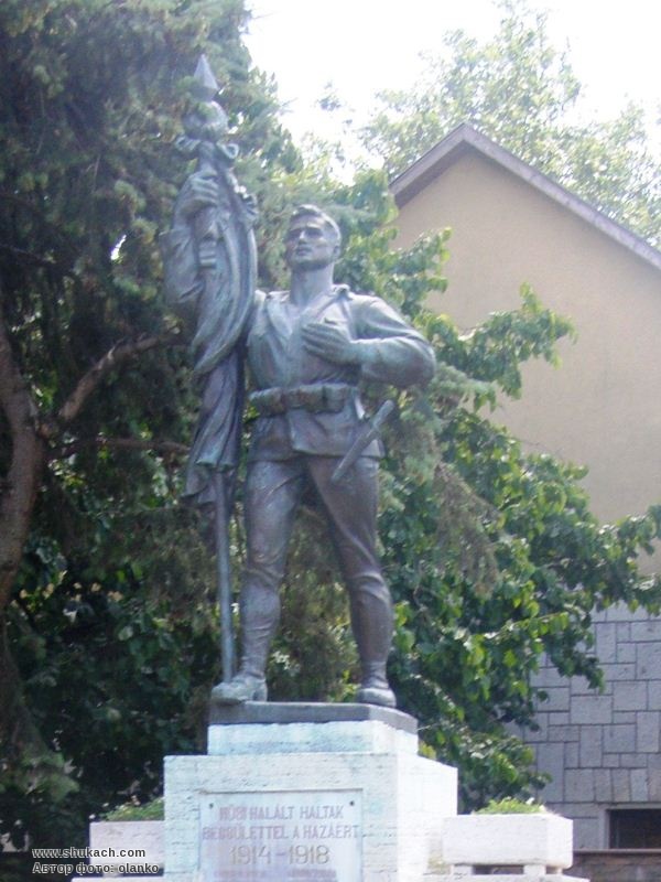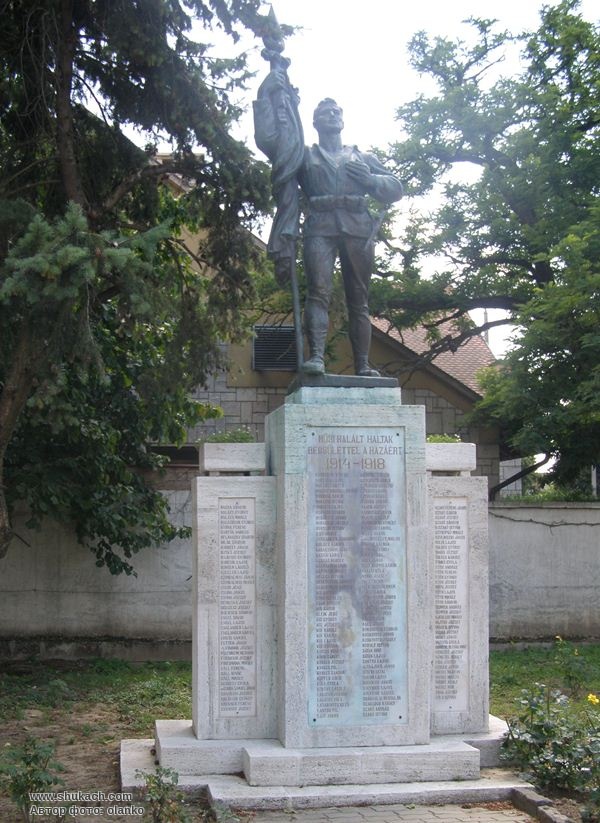 Бронзова статуя воїна з прапором. На постаменті – імена 170 жителів Токаю, які відділи життя за Батьківщину. Пам’ятник встановлений у 1943 році. Архітектор Шандор Вараді (Várady Sándor), скульптор Ференц Крауш (Krausz Ferenc).