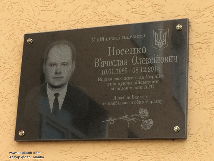 На фасаді школи встановлені дві меморіальні дошки – А.Г.Тищенку, який загинув в Афганістані, і В.О.Носенку, який віддав життя, захищаючи незалежність і суверенітет України.