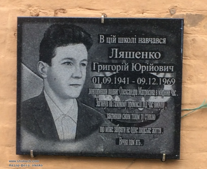 с. Світличне. Меморіальна дошка Г.Ю.Ляшенко.