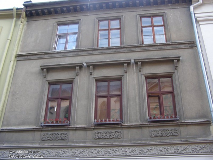 Житловий будинок 18 – 19 ст. Цегляний, витягнутий в плані, триповерховий з вузьким тривіконним фасадом, гладку поверхню якого прикрашають ліпний фриз і вставки над першим поверхом. Пам'ятка архітектури національного значення № 1248.