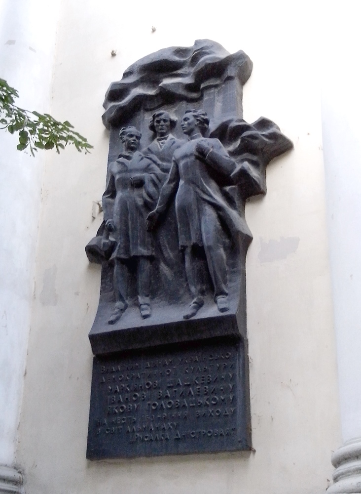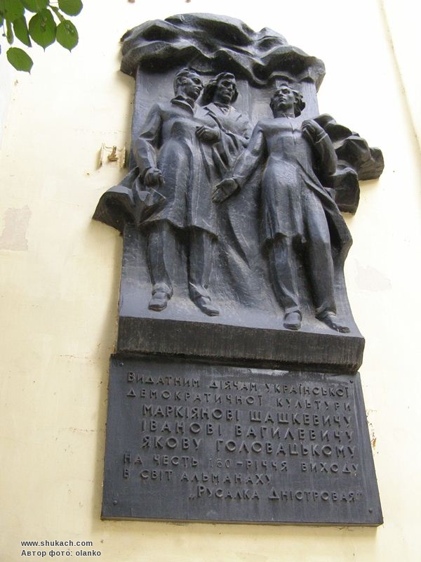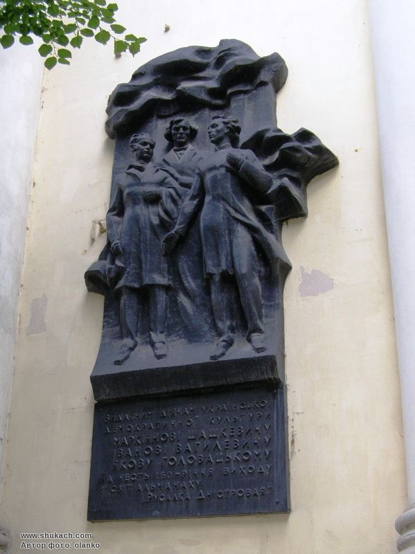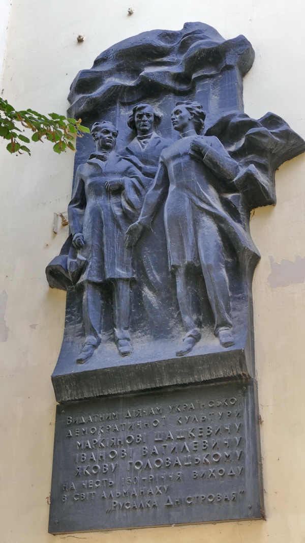 Меморіальна дошка встановлена у 1987 році на честь 150-ї річниці з випуску альманаху «Русалка Дністровая». Скульптор М.Посікіра, архітектор М.Федик.