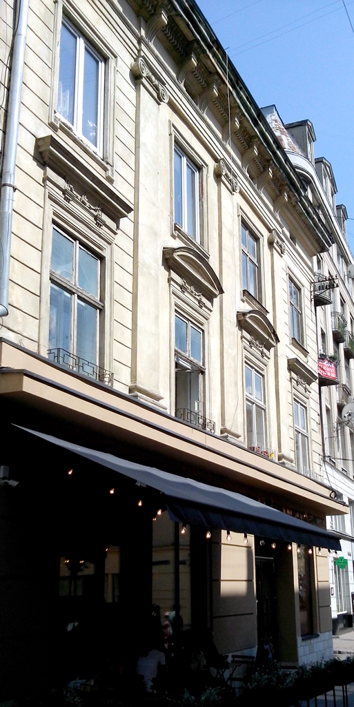 Будинок розташований у середміському кварталі, обмеженому вул. Галицькою, Староєврейською, Сербською і Братів Рогатинців. Триповерховий, чотиривіконний, із входом від вул. Братів Рогатинців, 9. Партеровий ярус не розчленований, верхні – оздоблені пілястрами іонійського ордеру, бічні площини – дощатим рустом. Вікна декорують прості та лучкові сандрики, фасад увінчаний карнизом і антаблементом із консолями. Пивниці склеплені.