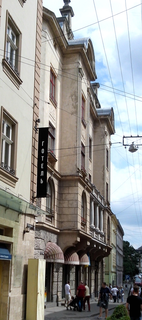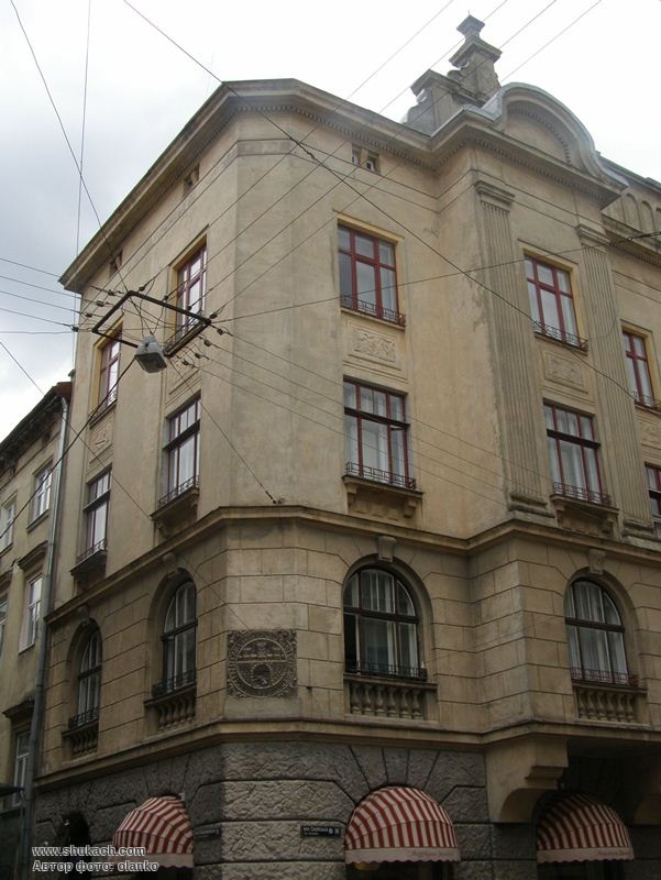 У XVIII ст. називалась кам’яниця Ґомбрихтовська (Gombrychtowska) (власність єврейська). Власник у 1871 р. – Коппель Пік і Горовіц (Pick Koppel i Horowitz). Тепер це чотириповерхова кам’яниця, що постала у 1911 р. за проектом Адольфа Піллера (Adolf Piller). Тоді ж на наріжнику встановили стилізовану таблицю з гербом Львова і датою (1633), яка свідчила, що власник будинку мав право емфітевзису. Оригінальна таблиця XVII ст. знаходиться зараз на кам’яниці при вул. Староєврейській, 34.