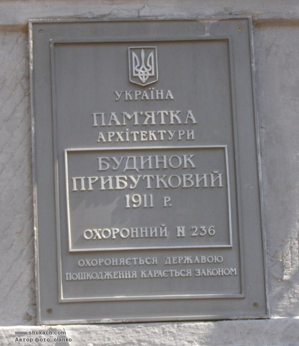 П'ятиповерховий з напівпідвалом та невисоким цоколем, цегляний, пофарбований, у плані трапецієподібний з невеликою дворовою прибудовою. Основний об'єм розвивається вздовж лінії вулиці, над ним споруджено мансарду. Пам'ятка архітектури.