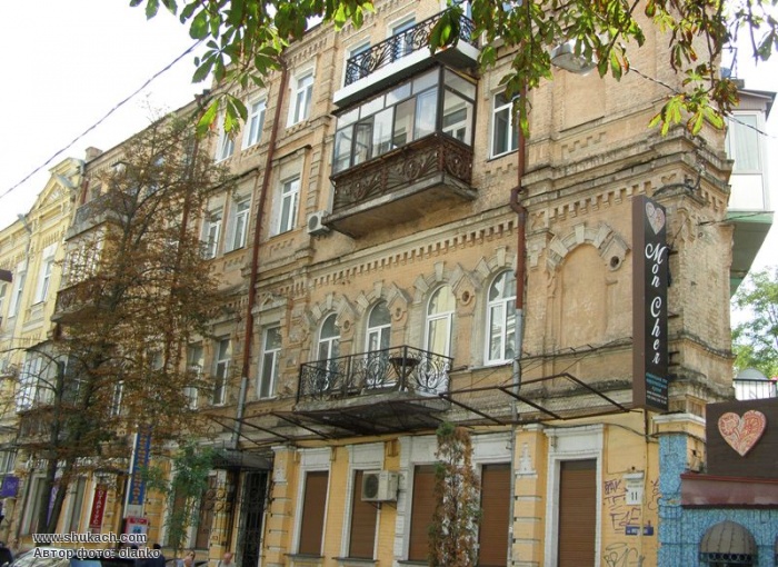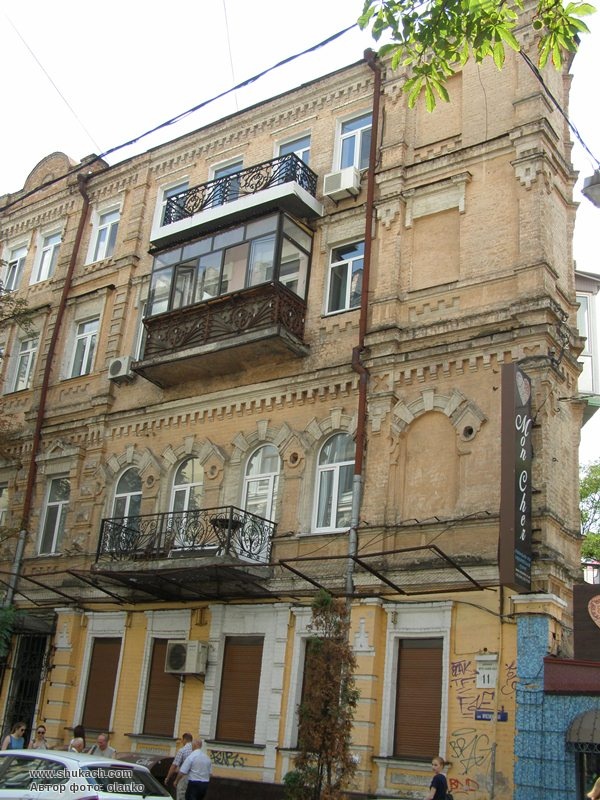 Влітку 1898 наріжну ділянку № 11 придбав відомий київський лікар-педіатр Ф. Чорномор-Задерновський. Новий власник того ж року звів двоповерховий будинок — первісний об'єм наявного. Є підстави вважати автором проекту цивільного інж. М. Артинова, який у ті ж роки зводив будинок амбулаторії Товариства надання допомоги хворим дітям, де тривалий час лікував Ф. Чорномор-Задерновський. Фасадний будинок використовувався як прибутковий — обладнаний під «умебльовані кімнати» (різновид дешевого готелю з обставленими меблями кімнатами, що винаймалися подобово та помісячно). До 1914 заклад мав назву «Відень». З початком 1-ї світової війни назву за столицею ворогуючої Австро-Угорщини замінили на готель «Бельгія», закритий 1915. 1922 садибу націоналізовано. Пам’ятка архітектури. Один з так званих "будинків з однією стіною", тобто будинок неправільної форми, який в певного ракурсу здається пласкім.