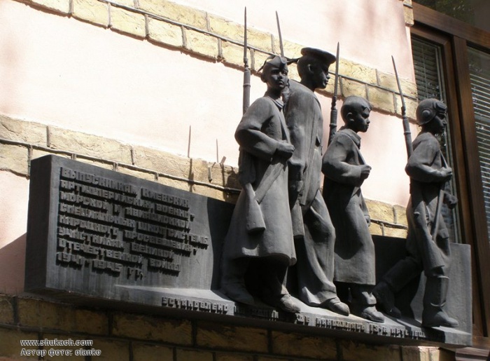 Скульптурна композиція, присвячена випускникам військових спецшкіл - учасникам Великої Вітчизняної війни, встановлена у вигляді пам'ятного знака на будівлі, де в 1937-41 рр. розміщувалася 13-а артилерійська спецшкола (зараз Київський національний університет театру, кіно і телебачення імені І. К. Карпенка-Карого).