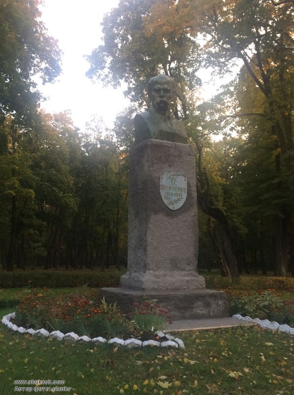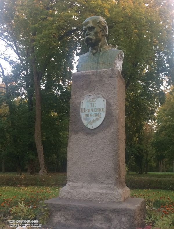 Погруддя Т.Г.Шевченка встановлене у 1965 році в парку ліворуч від головного корпусу.