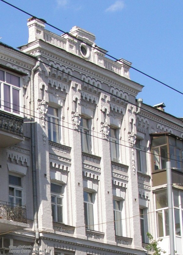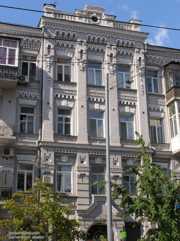 Побудований у 1899-1900 роках. Чотириповерховий з підвалом, цегляний, пофарбований, у плані близький до прямокутника, односекційний. Перекриття залізобетонні пласкі, дах двосхилий, з бляшаним покриттям. На лівому фланзі проїзд на подвір'я. Зовнішнє оздоблення симетричного фасаду типове для оформлення прибуткових будинків, вирішених у цегляному стилі. Пам’ятка архітектури.