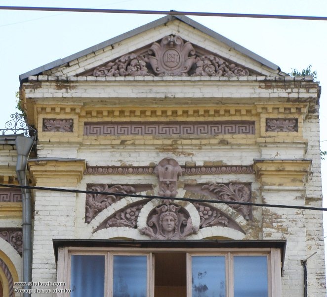 Споруда — яскравий зразок київського прибуткового будинку кін. 19 ст., оздобленого із застосуванням елементів ордерної системи.