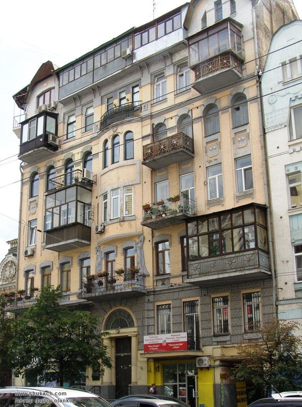 Побудований у 1911-1912 роках. Семиповерховий (перший поверх цокольний, останній мансардний), цегляний, тинькований, у плані Т-подібний, односекційний, з ліфтовою шахтою у центрі. Перекриття пласкі, дах вальмовий, з бляшаним покриттям. На правому фланзі проїзд на подвір'я. Вирішений у формах пізнього модерну. Пам’ятка архітектури.