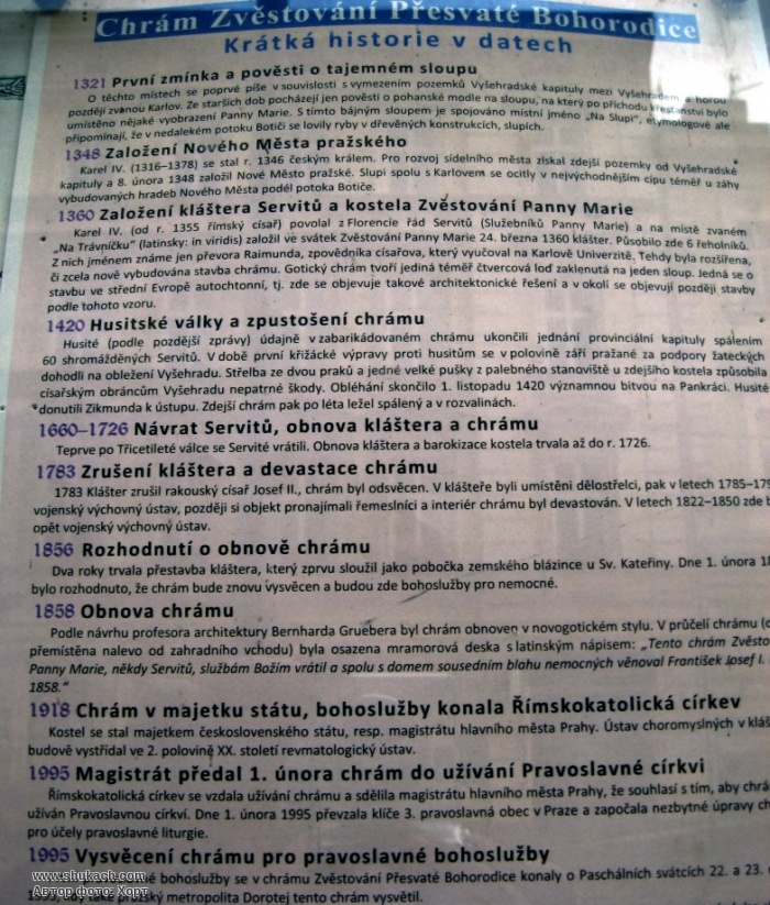 Православна церква Благовіщення пресвятої богородиці, знаходиться в колишньому римокатолицькому костьолі (Kostel Zvěstování Panny Marie Na Slupi) в Празькому районі Нове Місто (Novе Мěstо). Після повернення з Флоренції король Карл ІV почав 24 березня 1360 будівництво костелу в якості подарунку ордену Сервитів.