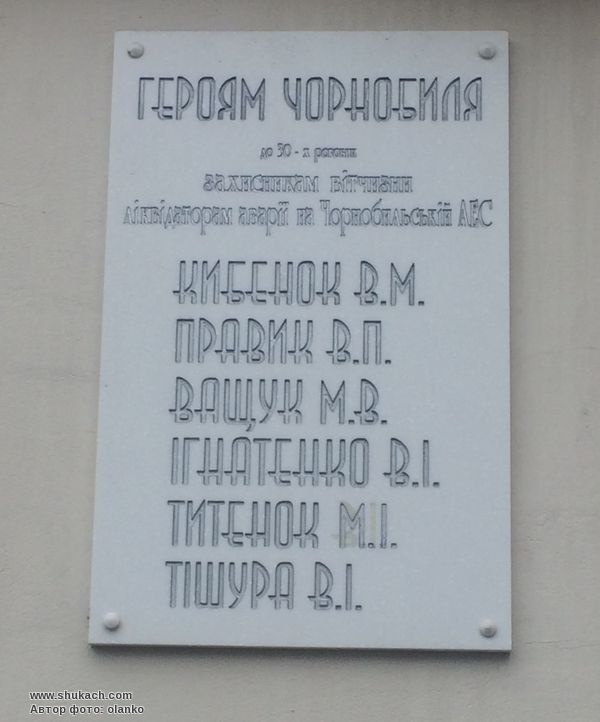 Пам’ятний знак пожежним, які померли внаслідок гострої променевої хвороби, отримавши її під час гасіння пожежі на ЧАЕС, встановлений на фасаді Головного управління ДСНС України в Київській області.