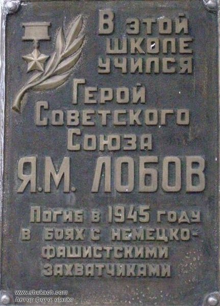 Меморіальна дошка встановлена на фасаді школи, в якій вчився Я.М.Лобов.