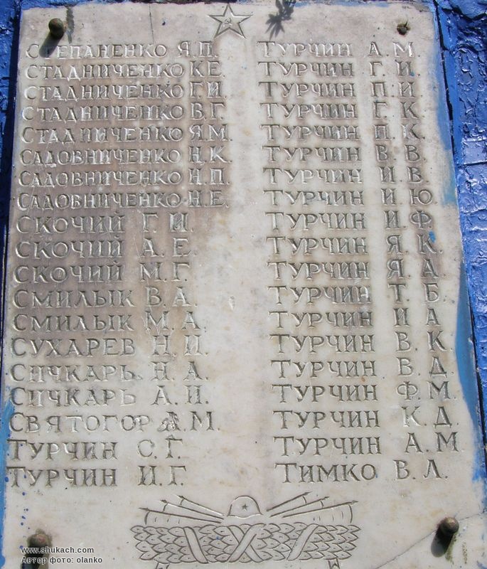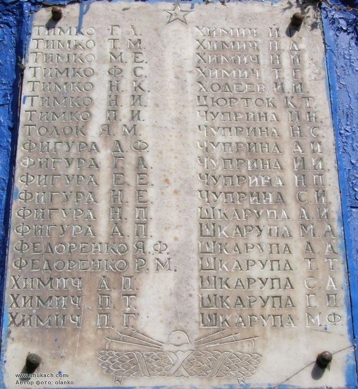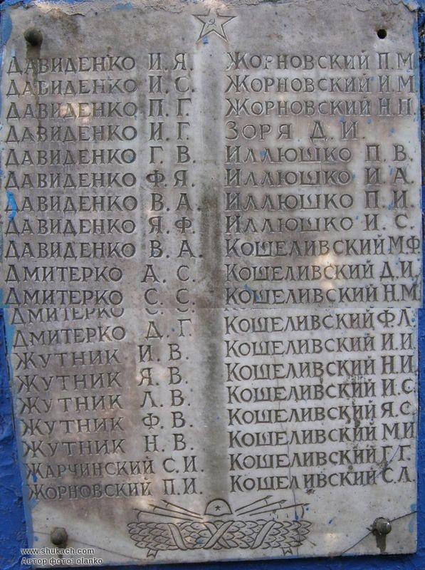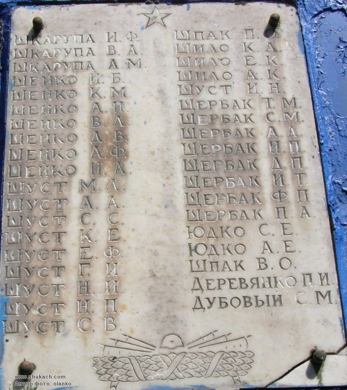 Під час Великої Вітчизняної війни 1300 жителів билися на фронтах проти німецько-фашистських загарбників. За мужність і героїзм, виявлені в боях з ворогом, понад 900 з них відзначено орденами й медалями. В боротьбі за свободу й незалежність Вітчизни 465 чоловік загинуло смертю хоробрих. На їх честь у 1968 році споруджено обеліск.