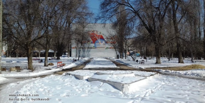 Величезну задню "глуху" стіну колишнього кінотеатру "Юність" (зараз він перетворений у такий собі торгівельний центр) прикрашає мозаїка, зміст якої є характерним для радянських часів та доречний на стіні закладу, який був місцем відпочинку багатьох містян. Крім того, що мозаїчне пано розташоване на стіні кінотеатру, воно дуже гарно видно вздовж головної алеї скверу, який в будь-який час дня відвідує чимало людей. Треба відзначити також, що мозаїка стає гармонійним тлом для пам'ятника воїнам-рубіжанам.