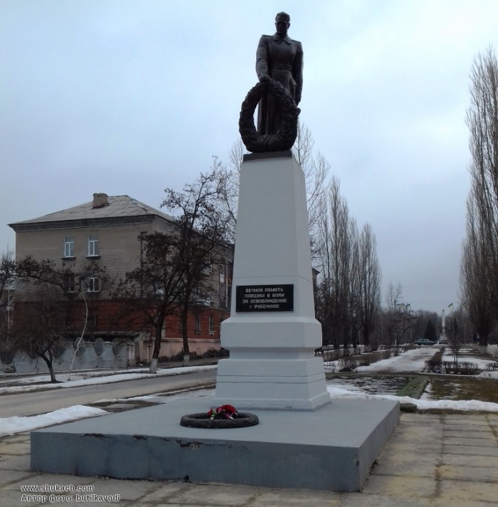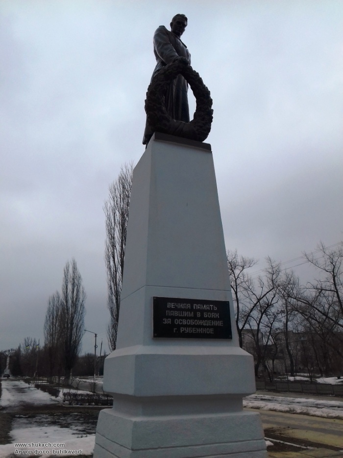 На пр-ті Переможців, біля Краєзнавчого музея розташована братська могила радяських вояків. У братській могилі поховані воїни 1 гвардійської армії, що загинули в боях за місто Рубіжне та від ран у 1942-1943 рр. Імена 37 відомі. Пам'ятник являє собою постамент, на якому залізобетонна скульптура воїна у повний зріст, його права рука притримує вінок, що стоїть біля ніг. На майданчику перед пам'ятником вічний вогонь. На могилі 8 плит. Виготовлений на Луганському художньо-виробничому комбінаті. Встановлений у 1957 р. Джерело.