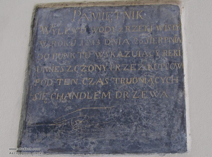 Неподалік від набережної Висли встановлені три таблички з рівнями реки під час повеней 1813, 1876 і 1903 років.