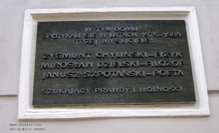 Три видатних діяча зустрічались у цьому будинку у 1975-1989 роках. Як написано на дошці, «шукачі правди і свободи».
