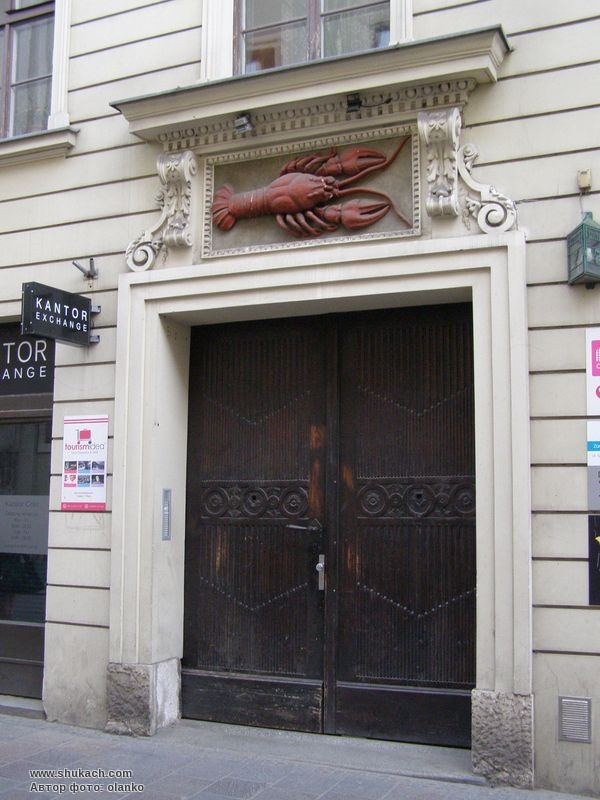 Готична кам’яниця походить з XV століття. Незважаючи на ґрунтовні перебудови XVII i XIX століть, був збережений домовий знак – червоний рак, що свідчить про торгівлю раками у цьому будинку. Пам’ятка архітектури з 14.05.1974, регістраційний номер А-540.