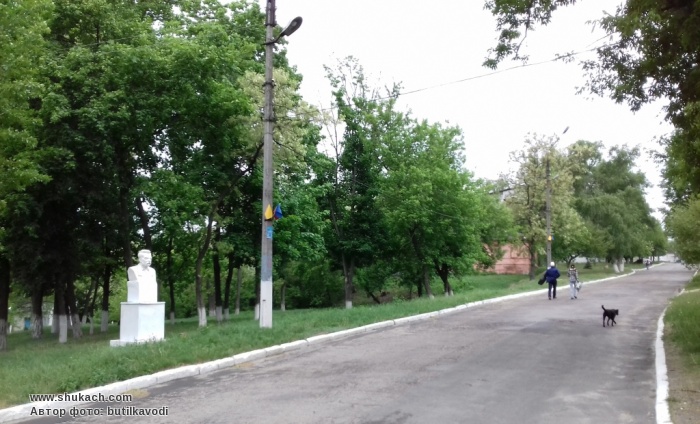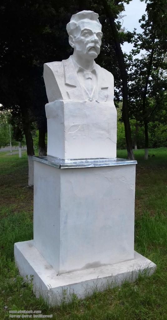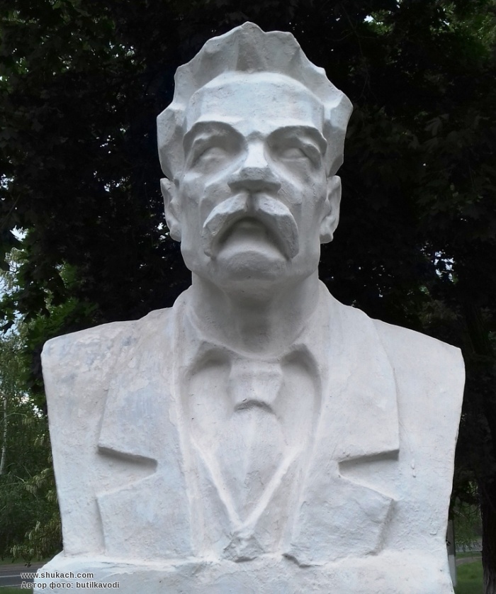 На початку вул. Макаренка стоїть на постаменті бюст радянського письменника Максима Горького (Пєшкова). Варто відзначити, що линії скульптурного портрету письменника доволі незвичні - в ньому є щось оригінальне, незвичне для скульптур цього діяча радянської доби.