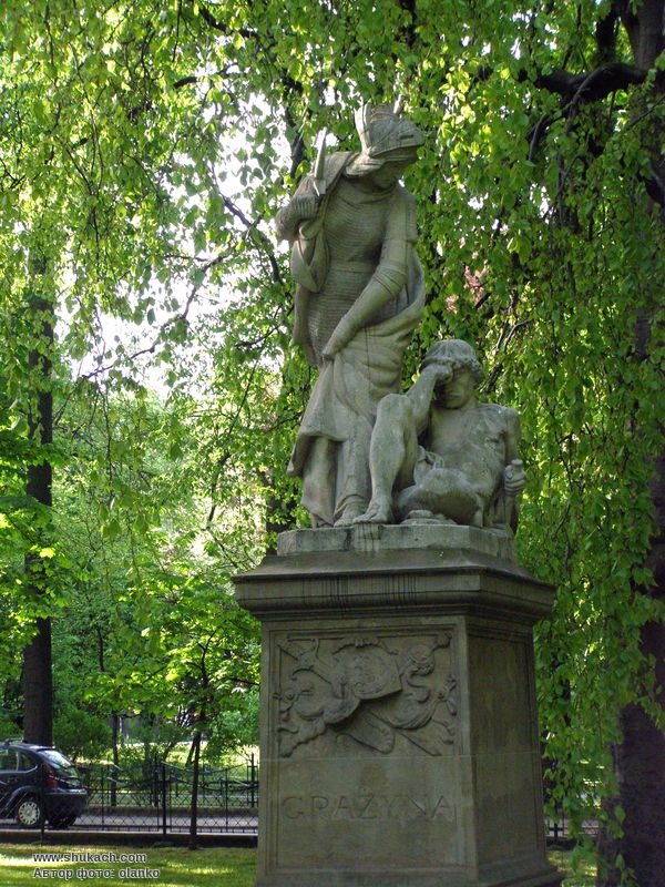 У 1886 році на краківських Плантах в районі вул. Посельської був встановлений пам'ятник Гражині і Літавору – героям поеми Адама Міцкевича «Гражина». Засновником пам'ятника став доктор Хенрик Йордан, його автор - скульптор Альфред Даун. Пам'ятник, розташований на невеликому пагорбі, складається з п'єдесталу та скульптурної групи, розміщеній на ньому. Просторий п'єдестал прикрашений стилізованим рельєфом.