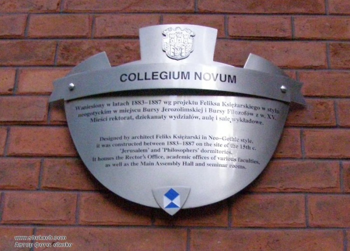 Колегіум Новум – головний будинок Ягеллонського університету. Побудований на місці бурси Іерусалим, яка згоріла у середині ХІХ століття. Цей неготичний будинок збудований у 1883-1887 роках за проектом Фелікса Кшежарського.