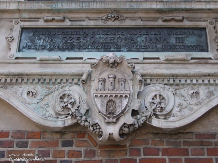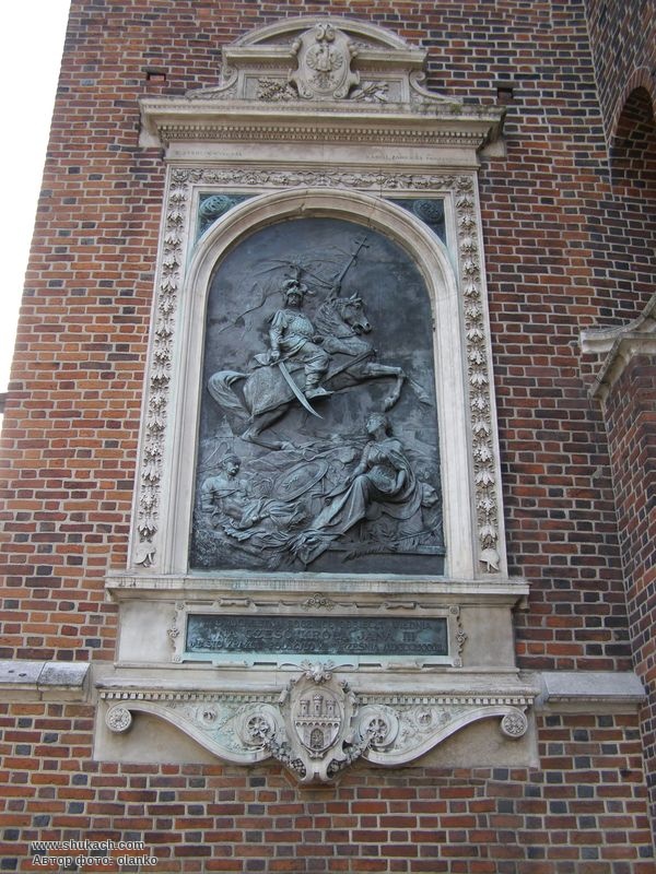 м. Краків. Меморіальна дошка королю Яну Собеському на фасаді Маріацького костелу.