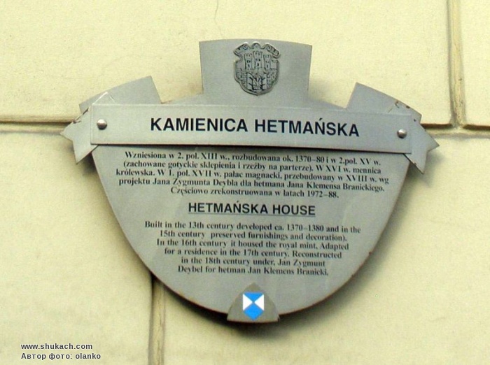 Гетьманська Кам'яниця або старий монетний двір - будівля, що є однією з найважливіших не тільки в межах ринку, але всього Кракова. Тут зосереджена історія, архітектура, традиція і легенда від часів середніх століть. Перша забудова повстала близько 1300 року, а значна перебудова проведена у середині XІV століття. Розмір ділянки і самої будівлі, її положення, місцеперебування поблизу головного торгу дозволяють припустити, що це міг бути королівський міський палац. Засвідчувати це може готична зала, що розташована на першому поверсі будівлі. Володіє вона склепіння, на який тому, щоб замокнути знаходяться портрети Казимира Великого і його сестри, королеви угорської Ельжбети Локітковни. Це, власне, підтверджує власність монарха.