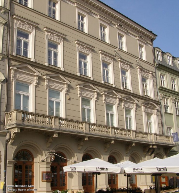 Забудова постала на місці двох кам’яниць XIV століття. Перша з них – кам’яниця Кеснеровська – належала міським райцям. У XVI столітті перебудована у стилі ренесансу, тоді отримала аттик і повантажений дах. Друга, з боку вулиці Віслна, мала назву «Під круком». У XV столітті належала до купецького роду, а пізніше до Фугетів, магнатів і фінансистів. З XVI століття перейшла у власність шляхтичів – сандомирського воєводи Станіслава Шафранека, військового освенцімського Яна Мишковського. У XVIII столітті перебудована в бароковий палац для родини Шембеків.