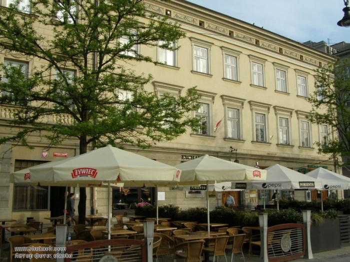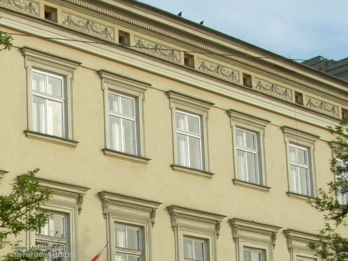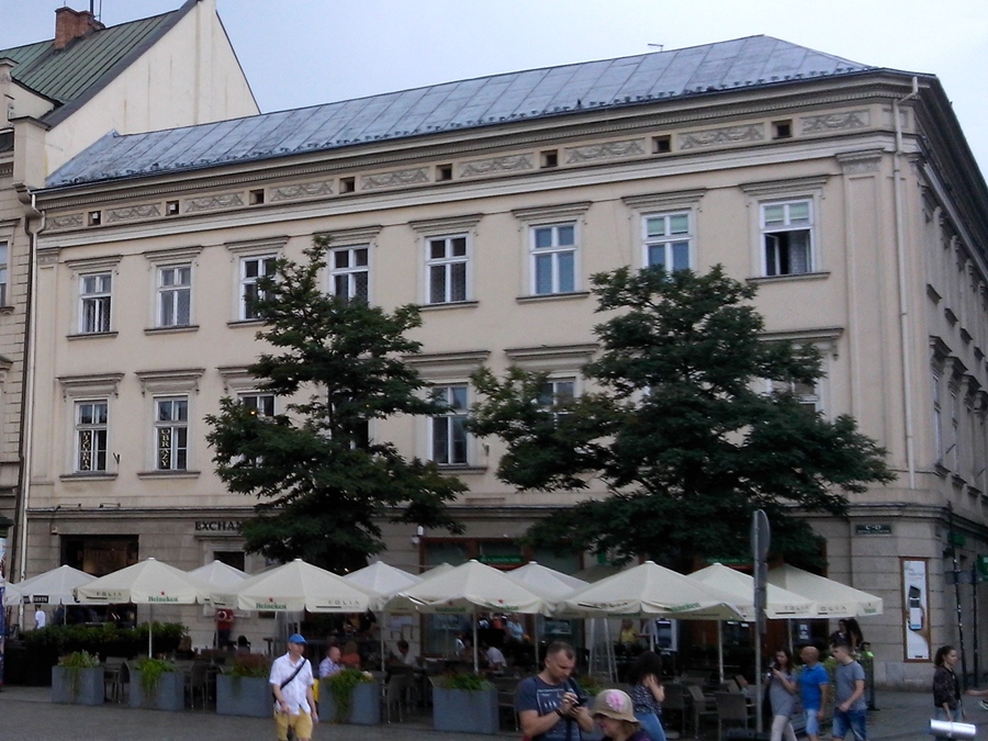 Кам’яниця Циглеровська знаходилась з полуденного боку, повстала на початку XIV століття. Належала купецьким родинам, в тому числі Циглерам. У 1741 році була закуплена через єзуїтське Архібратерство Милосердя. Колишня кам'яниця Кортиновська була наріжним будинком з Шевською вулицею. Належала одному з найбагатших краківських купців, засідателю Вищого німецького суду Рудольфу Цортіні. У 1733 році також була закупленою через Архібратерство Милосердя. Три роки пізніше була частково знищена через вибух пороху, складованого тут у проїжджого купця. З боку вулиці Шевської стояв будинок, що звався Ринтовським. Його назва походила від прізвища власників – роду Ринтів. Кам’яниця походила з XIV століття, але з 1736 року стояла занедбаною. Всі три будівлі об'єднано в одне ціле після 1736 року для Архібратерства Милосердя. Близько 1795 року будинок купил Петро Малаховський – краківський воєвода. Він заповів його своїй дружині – Теклі Водзічке, а та , в свою чергу – брату, графу Юзефу Водзічке. У власності роду кам’яниця перебувала до 1911 року. Усередині збереглися дерев'яні склепіння, барокові портали і розписи XІX століття в помпейському стилі. Перед цим палацом 24 березня 1794 року склав свою відому присягу Тадеуш Костюшко.